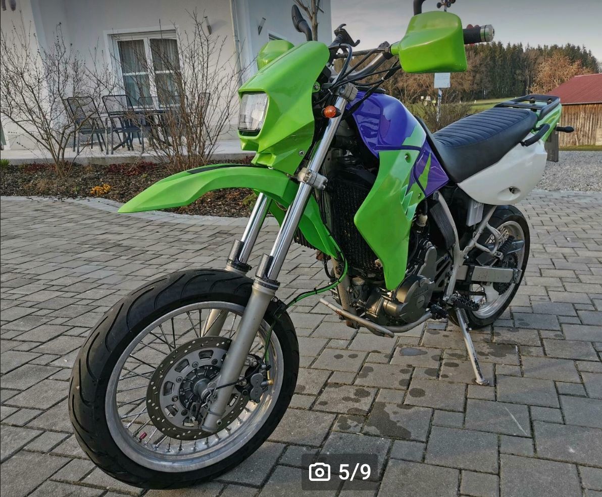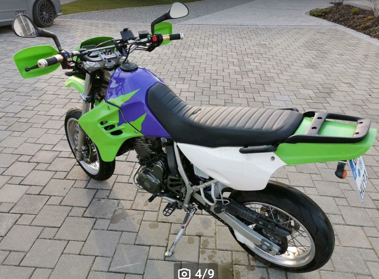 Ich habe vor ein paar Jahren mal einen Supermoto Umbau einer KLR 650 C mit Motorschaden (wie immer das Doo) gekauft.